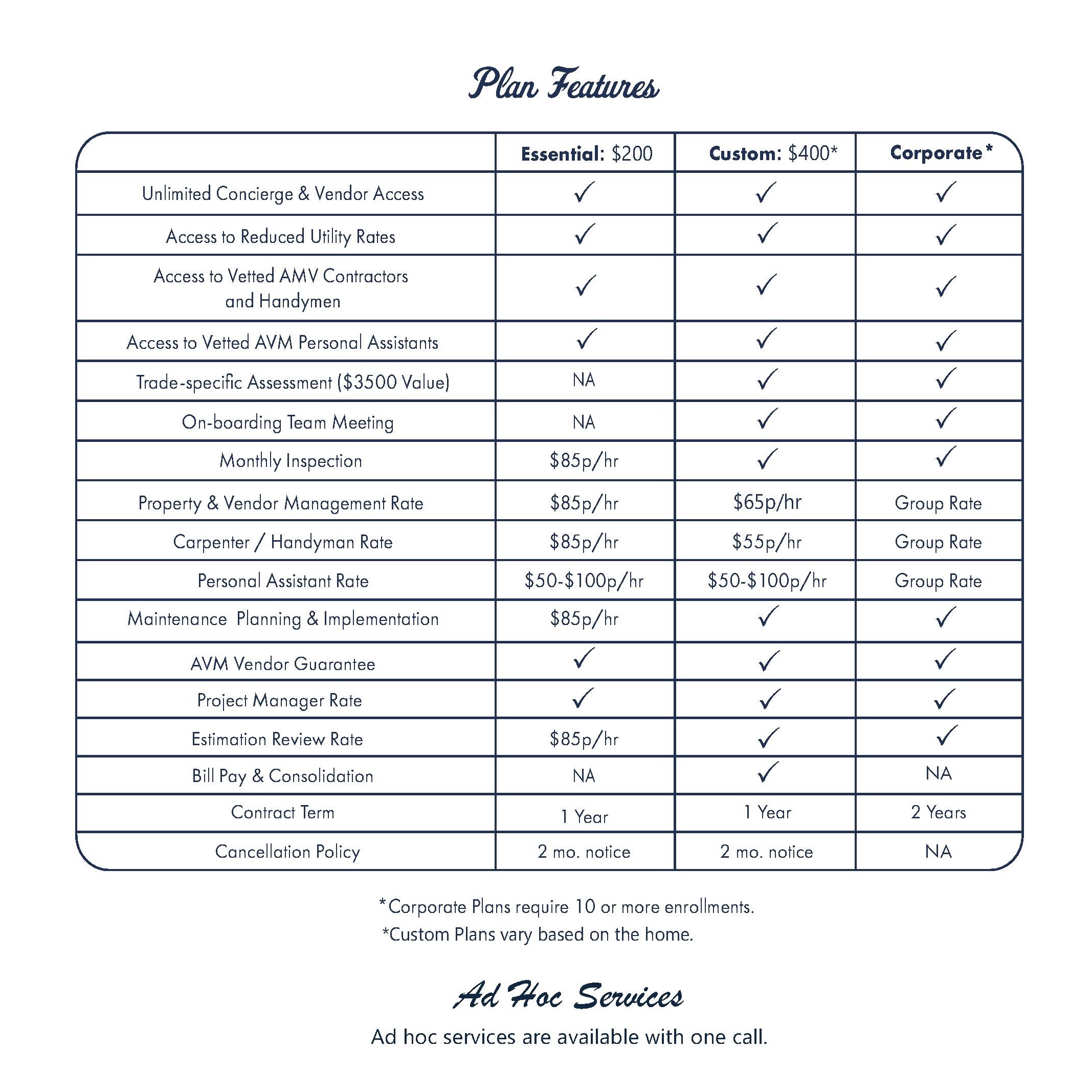 Choose the essential, custom or a corporate sponsored plan.